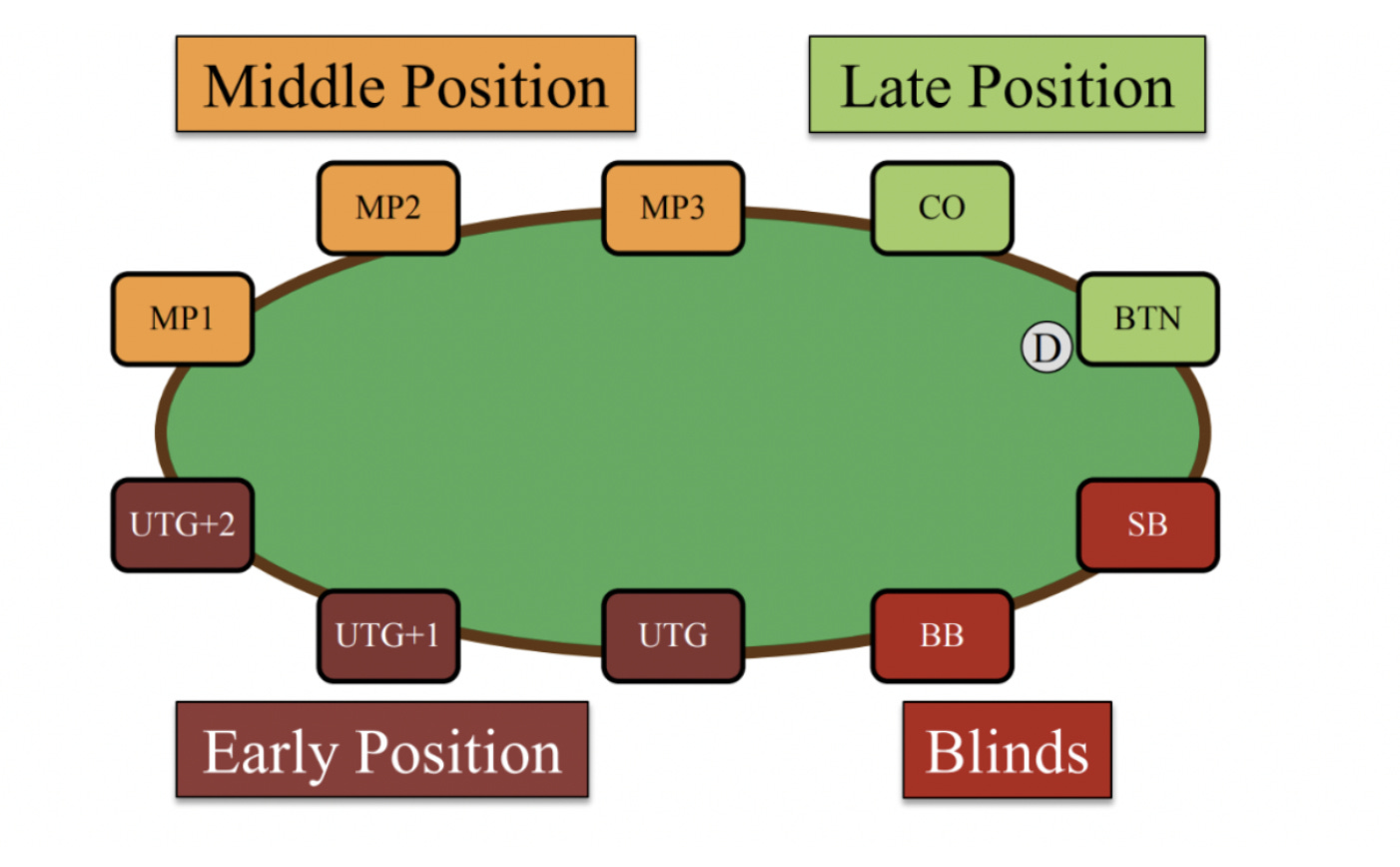 Understanding the relative strength and weaknesses of position in Poker is key. Here’s a brief overview of each position, played clockwise: