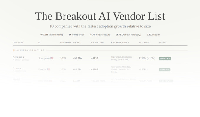 The 10 breakout AI vendors, enriched 👇