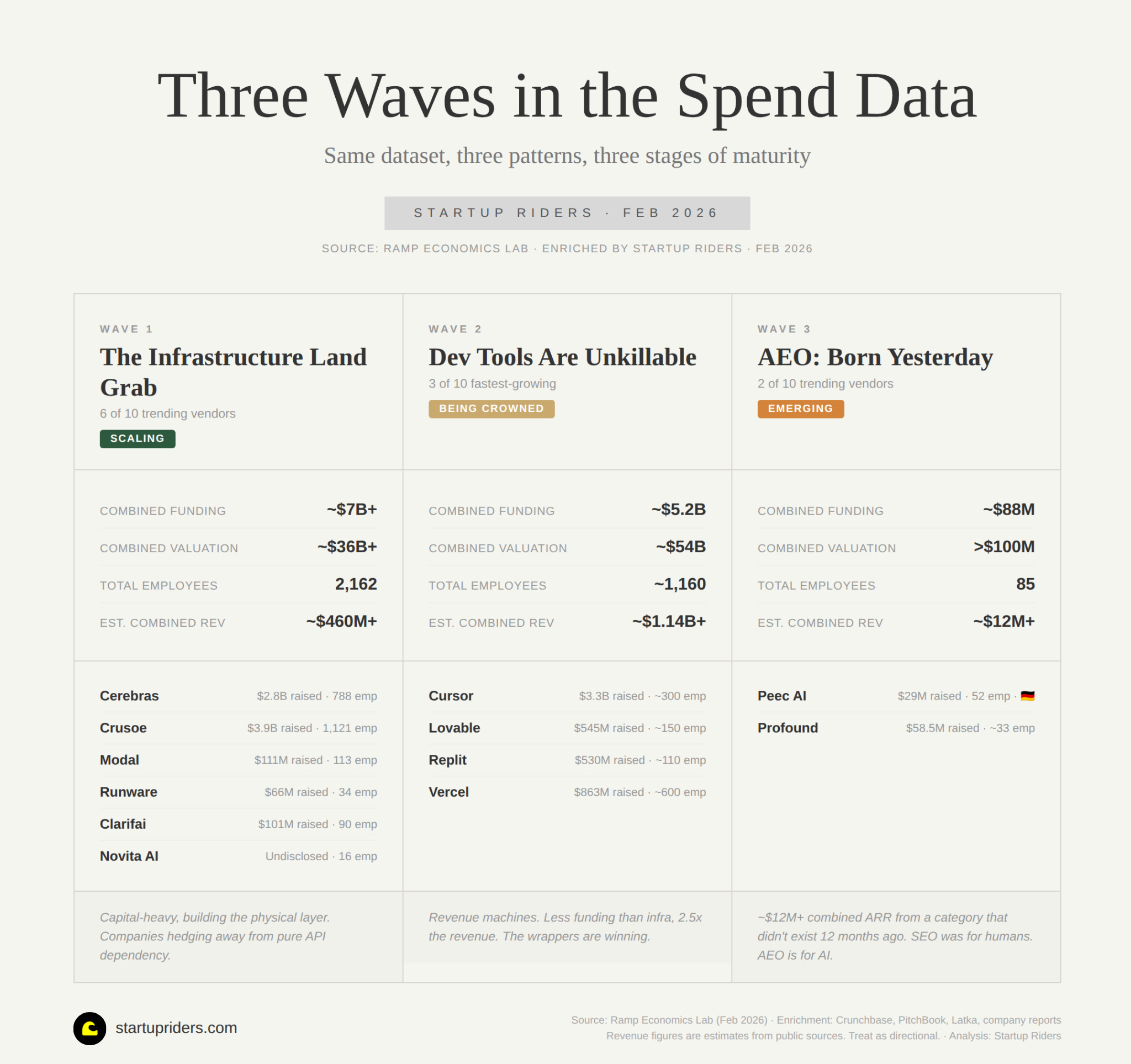 Infrastructure: 6 of 10 trending vendors are AI infra. $7B+ in combined funding and $400M+ in revenue.