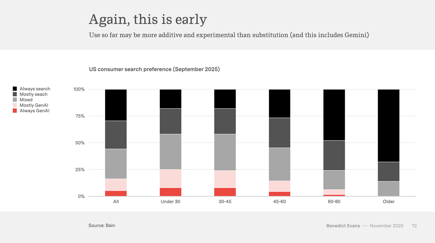 Even among under-30s, âAlways GenAIâ is a minority behaviour. Most consumers alternate between traditional search and AI tools.
